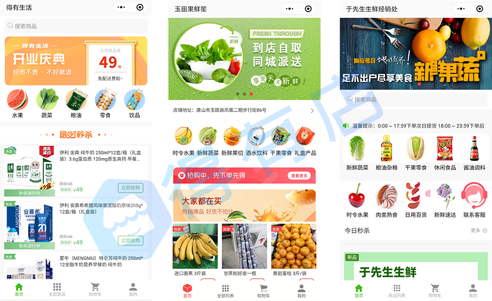 1.通过小程序二维码,在线扫码购物,价格产品信息一目了然,打消顾客对食品安全的疑虑;同时得有店支持跑腿送物流送到店自提多种配送方式,轻松在家等待;