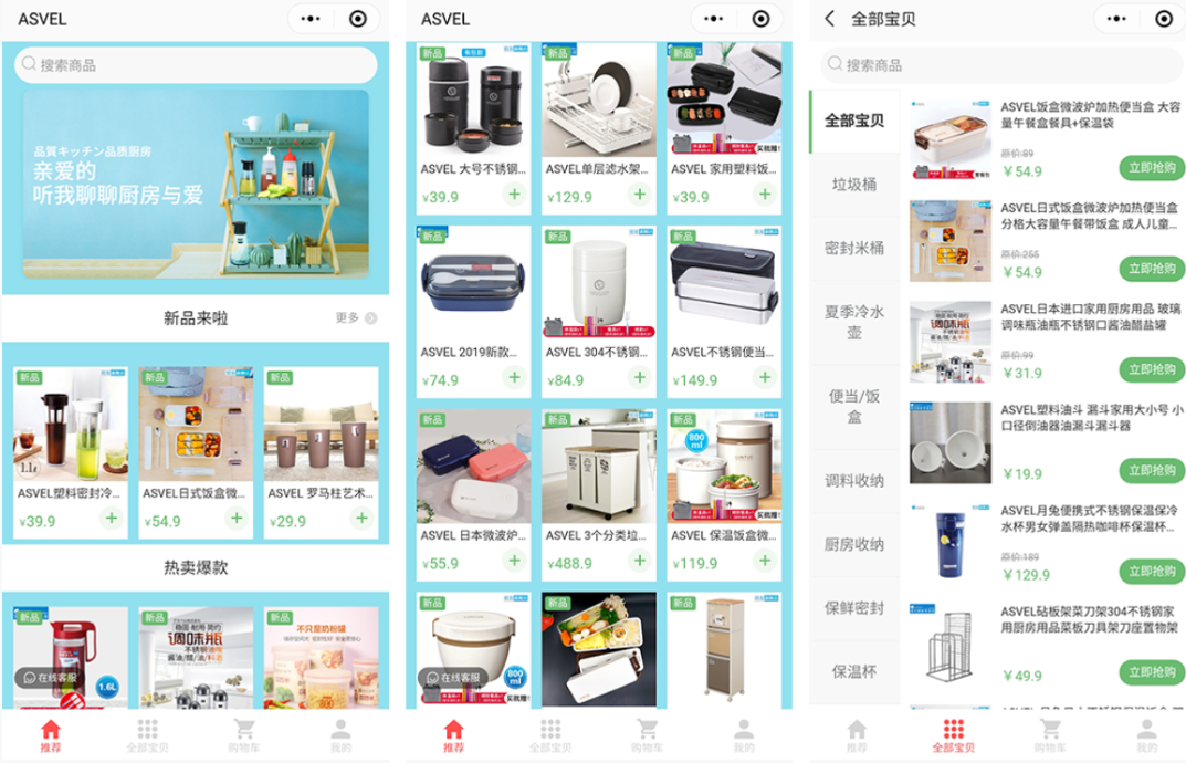 小程序店铺要定时上新,以长期吸引顾客消费,尽量不要一成不变没有新意,因为这会给用户一种错觉,认为店铺是否已经不再正常营业或者处于无人打理的状态。除此之外,店铺还可以定期设置促销活动,像每周一上午十点上新,每周二新品秒杀、周三爆款拼团等等,以此类推,让用户每天都有新的体验,刺激用户消费。