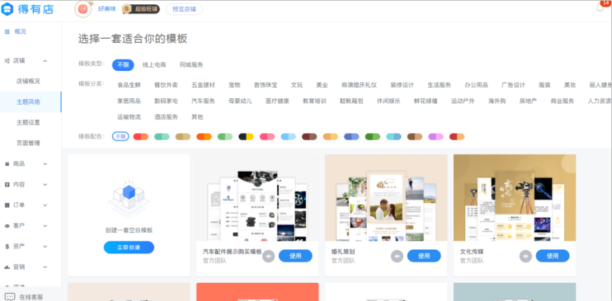实体店要想提高客流量就要采用线上线下相结合的模式,商家可以直接利用第三方搭建平台得有店一键进入搭建,0基础,3分钟搭建,系统内200+功能全部免费,183+行业模板随意使用,只需要轻轻拖拽即可完成。