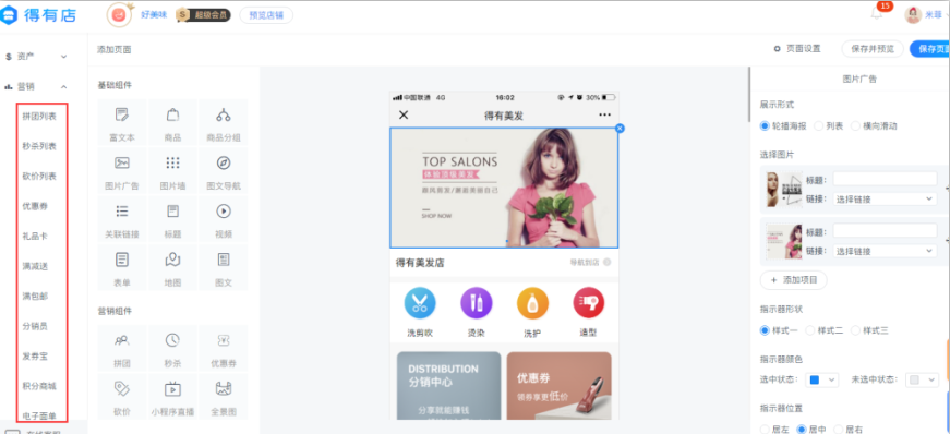 除此之外,还有很多其他营销工具可供选择,像分销、砍价、会员卡、积分商城等等,商家可根据店铺情况灵活设置。