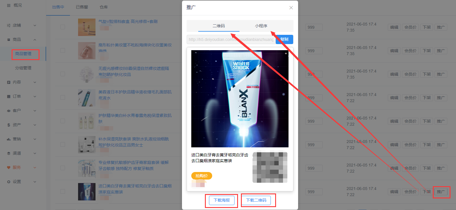 得有店后台操作截图,禁止转载