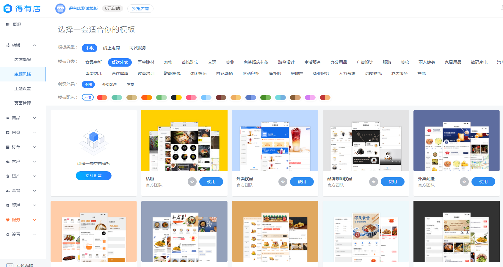 2、进入商家管理后台,选择适合自己的行业模板,直接一键套用。