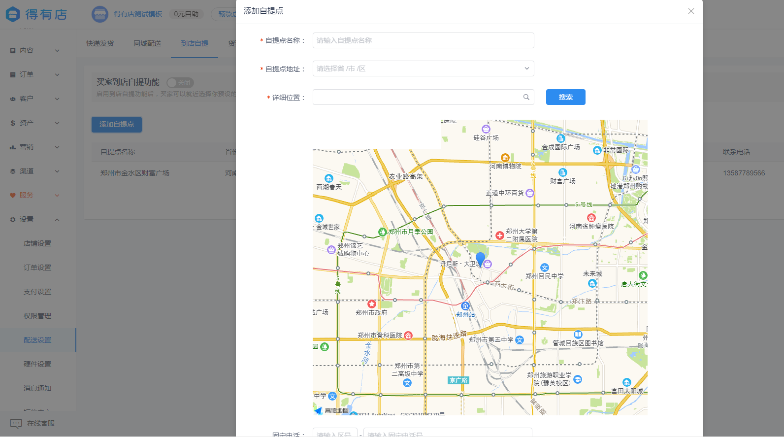 7、在设置中,还可以找到配送设置,根据自己的店铺情况,合理设置配送范围,除此之外,还可以将营销玩法与配送相结合,比如线上秒杀+到店自提,线上拼团+同城配送等等,以此实现用户留存。
