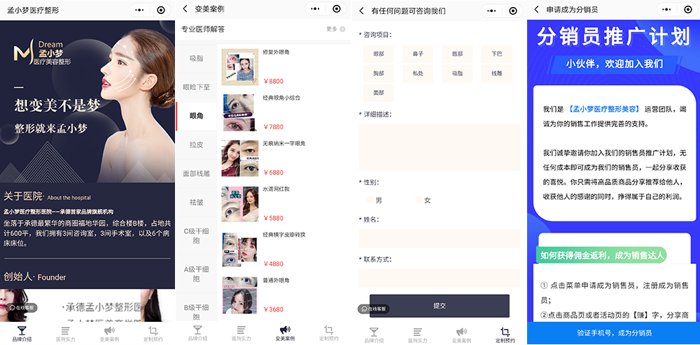 得有店小程序支持图文、视频、广告、轮播图、照片墙、导航等个性内容的展现形式。在小程序上可以展示品牌实力、作品、案例等,来吸引粉丝的关注,基于小程序的社交裂变传播,扩大了品牌的曝光和知名度,从而积累更多的粉丝。