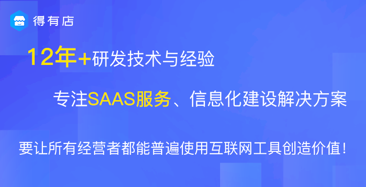 得有店拥有12年+互联网产品研发经验,SaaS领域技术成熟,专业运维、云储存数据安全可靠。