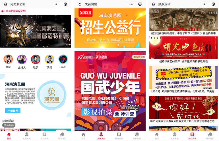 比如演艺工作室,需要满足商家对于展示的需求,以图文、视频、广告、轮播图、导航等个性化内容展现品牌,扩大品牌的曝光与知名度,帮助工作室积累更多的粉丝。