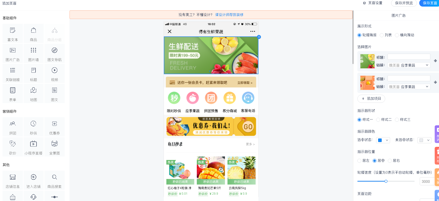 得有店,就是典型的SaaS系统,提供已经开发了功能组件、主题模板、营销应用等,商家只需要自主拖拽设计即可完成小程序的制作。并且目前,系统是完全免费使用的,不需要任何成本,能满足大多数商家的需求,像产品或服务的展示和销售,各种营销玩法,会员管理,订单处理,物流快递等等。