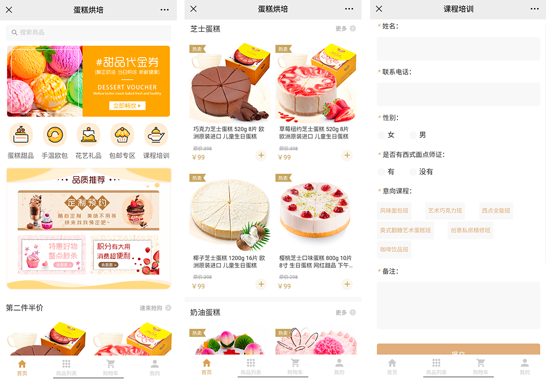 蛋糕烘焙店平日的客源其实并不多,但是如果开通了线上商城,大家就可以通过手机直接下单进行购买了。小程序就能帮助蛋糕店扭转这一尴尬现象,商家可以通过社群、朋友圈的营销运营,通过小程序商城线上开店。那么怎样搭建一个小程序商城呢?快速制作小程序的操作步骤送上!